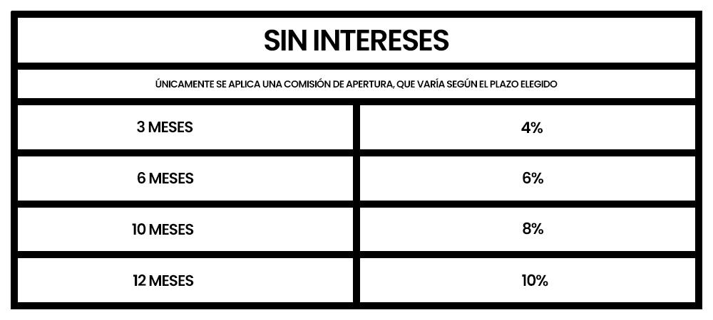 En tal caso, existe la opción de hasta 30 meses sin intereses también pero tan solo con una comisión de apertura y un seguro que va incluido.