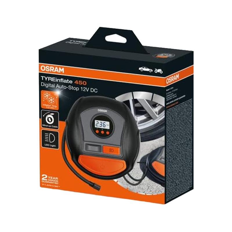 El OSRAM Tyreinflate 450 es un compresor portátil para inflado rápido de neumáticos, diseñado para inflar ruedas de coche, moto o bicicleta de forma rápida y sencilla. Puede inflar un neumático pinchado en aproximadamente 3,5 minutos, permitiéndote volver a la carretera con rapidez.
