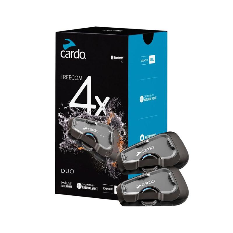 El Cardo Freecom 4X Duo es un intercomunicador Bluetooth para moto en pack doble, ideal para motoristas que ruedan en pareja o en grupo y necesitan una comunicación estable de hasta 4 usuarios. Este set incluye dos intercomunicadores, ofreciendo una solución completa con altas prestaciones para rutas largas y uso diario.