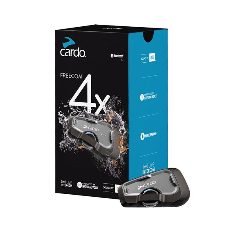 El Cardo Freecom 4X es un intercomunicador Bluetooth avanzado para moto, diseñado para motoristas que necesitan comunicación en grupo de hasta 4 usuarios con una conexión estable y sonido de alta calidad. Incorpora Bluetooth 5.2 y la reconocida tecnología de audio JBL, ofreciendo una experiencia sonora clara y potente para llamadas, música e indicaciones GPS incluso a altas velocidades.