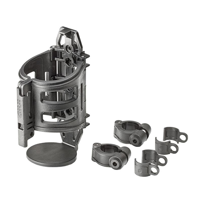 El GIVI E199 es un soporte para botella térmica fabricado en nylon reforzado con fibra de vidrio, diseñado para ofrecer resistencia, estabilidad y practicidad durante viajes en moto. Permite transportar la botella de forma segura y accesible, ideal para rutas largas y uso adventure o touring.