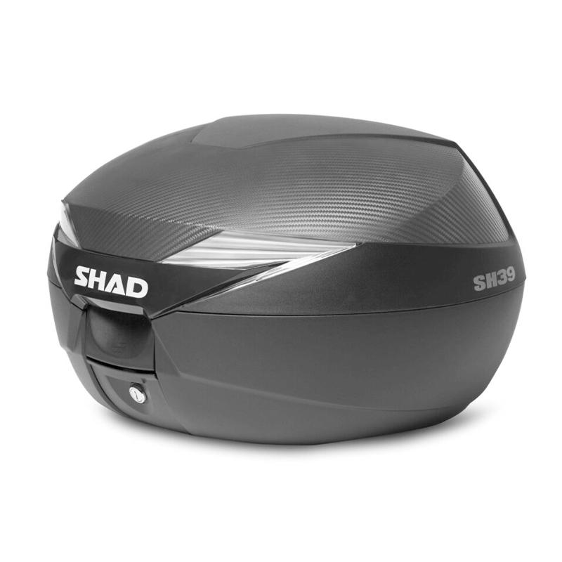 El SHAD SH39 Carbono es un top case para moto compacto y funcional, ideal para el uso diario en ciudad y desplazamientos cortos. Con una capacidad de 39 litros, permite transportar casco y objetos personales de forma cómoda y segura, ofreciendo una solución práctica para el motorista urbano. Su acabado Carbono aporta un diseño moderno y deportivo, combinando estética y funcionalidad. Fabricado con materiales de alta calidad, el SH39 incorpora un sistema de cierre seguro que protege el contenido frente a robos y golpes. Compatible con los sistemas de fijación SHAD, garantiza una instalación rápida y estable en la moto.